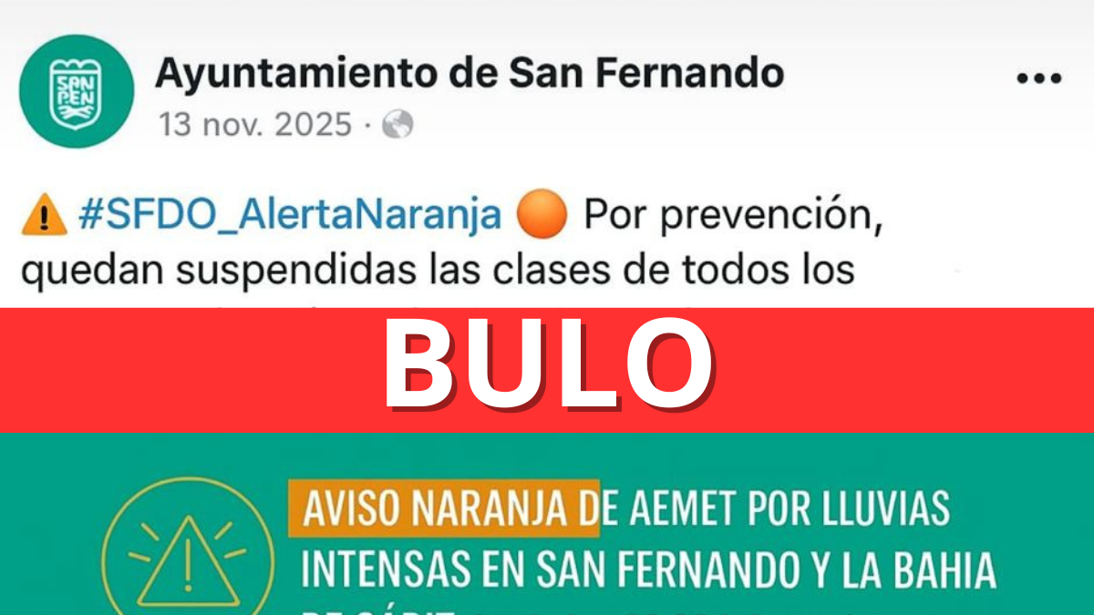 En las últimas horas se ha difundido por redes sociales y grupos de WhatsApp un mensaje falso que asegura que el Ayuntamiento de San Fernando ha anunciado oficialmente el cierre de los centros educativos de la ciudad para mañana viernes 14 de noviembre.