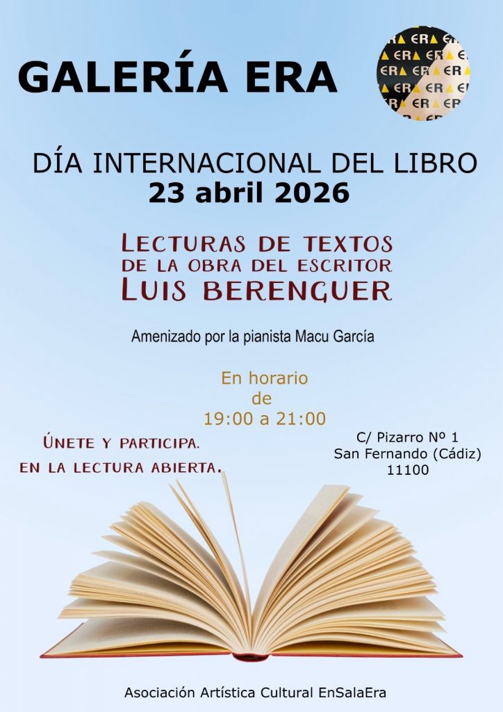 El acto, cuya entrada es gratuita hasta completar el aforo, se celebrará el próximo día 23 de abril, a partir de las 19:00 horas, en La Galería Era, c/ Pizarro, nº 1, San Fernando.